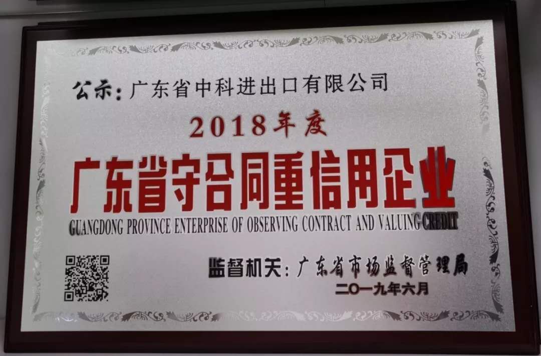 獲得2018年度“廣東省守合同重信用企業(yè)”稱號(hào)